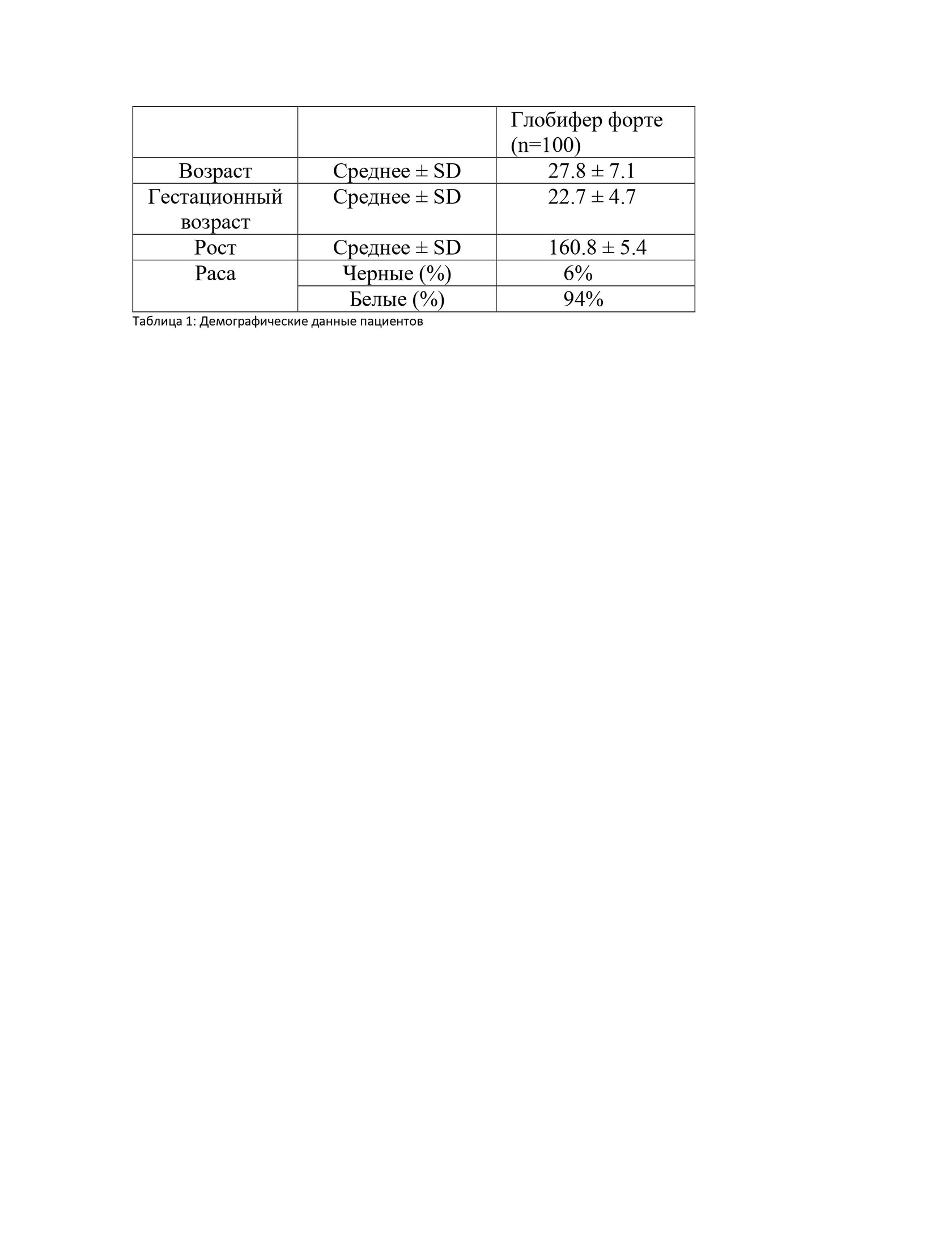- В нашем исследовании демографические данные пациента представлены в таблице 1.