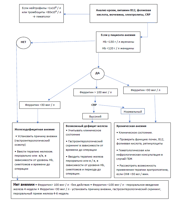 - Пациенты с анемией должны пройти обследование и пройти лечение до операции.