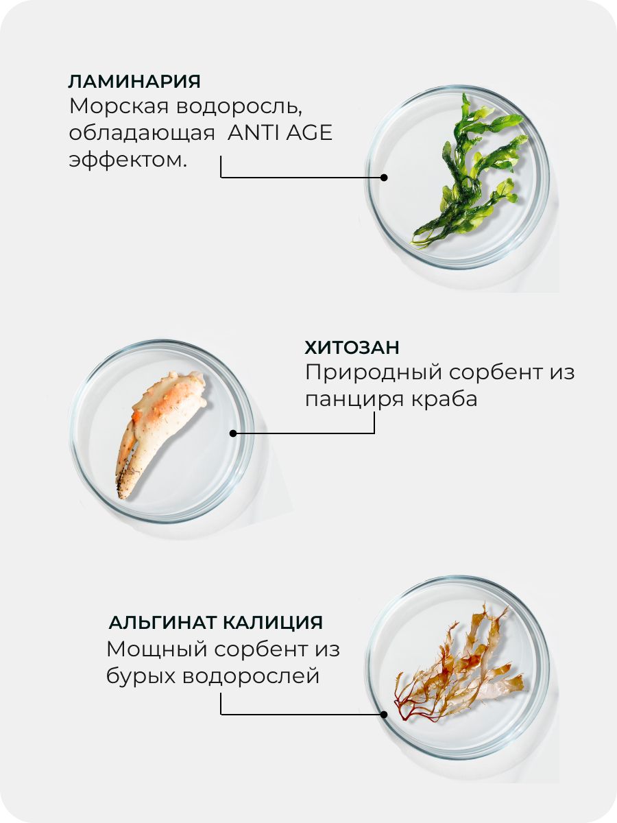 - Альгинат кальция, экстрагированный из бурых водорослей, мягко очищает желудочно-кишечный тракт, связывая и выводя продукты метаболизма и соли тяжелых металлов. Он помогает создать условия для восстановления здоровой микрофлоры, стимулирует моторику кишечника и служит отличным источником легкоусвояемого кальция для поддержания здоровья костей.
