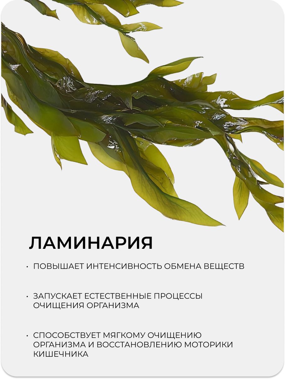 - Ламинария японская (морская капуста) является натуральным источником органического йода, необходимого для корректной работы щитовидной железы и устранения дефицита этого важного элемента, а также мягко поддерживает нормальную работу кишечника.
