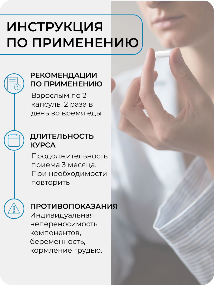 Взрослым по 2 капсулы 2 раза в день во время еды, запивая водой. Продолжительность приема 30 дней. При необходимости курс можно повторить.