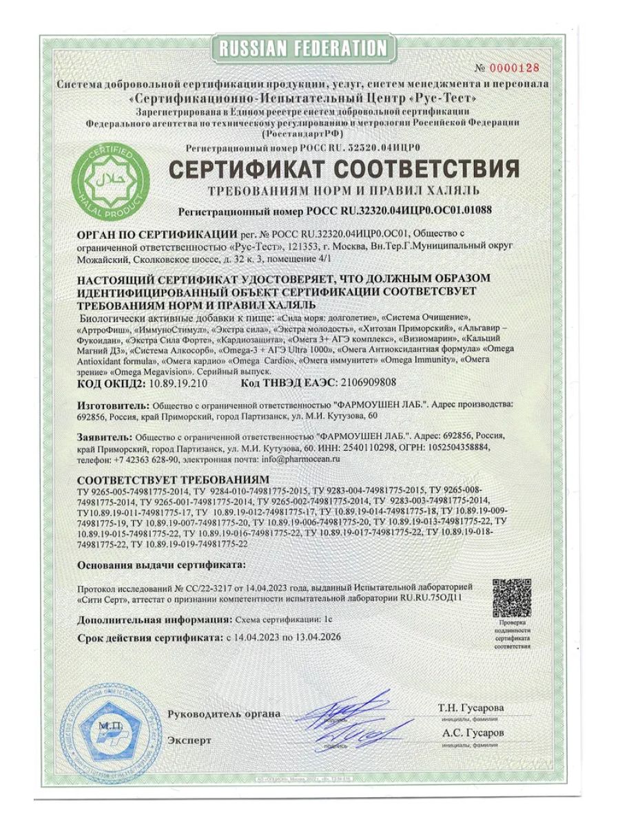 Важной особенностью комплекса является его способность поддерживать здоровье сердечно-сосудистой системы за счет снижения уровня холестерина, триглицеридов и общих липидов в крови. Кроме того, он служит дополнительным источником ценных питательных веществ: пищевых волокон (хитозан), биодоступного кальция (альгинат кальция) и органического йода (ламинария).